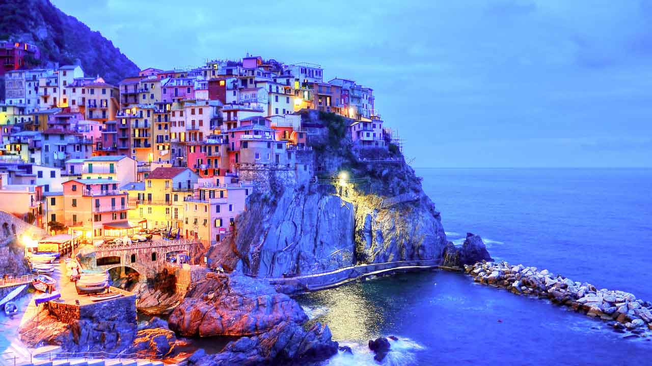 Italy Manarola Night View Along The Coast Italy Wallpaper Greece Wallpaper World Heritage Sites